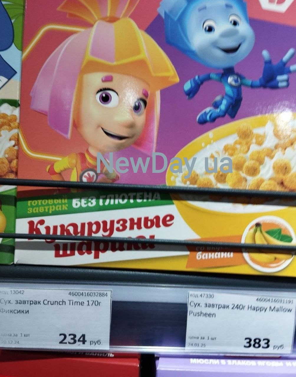 230-грамовий вафельний тортик коштує 145 рублів. Сухі сніданки коштують від 234 (170 г) до 383 (240 г) рублів.