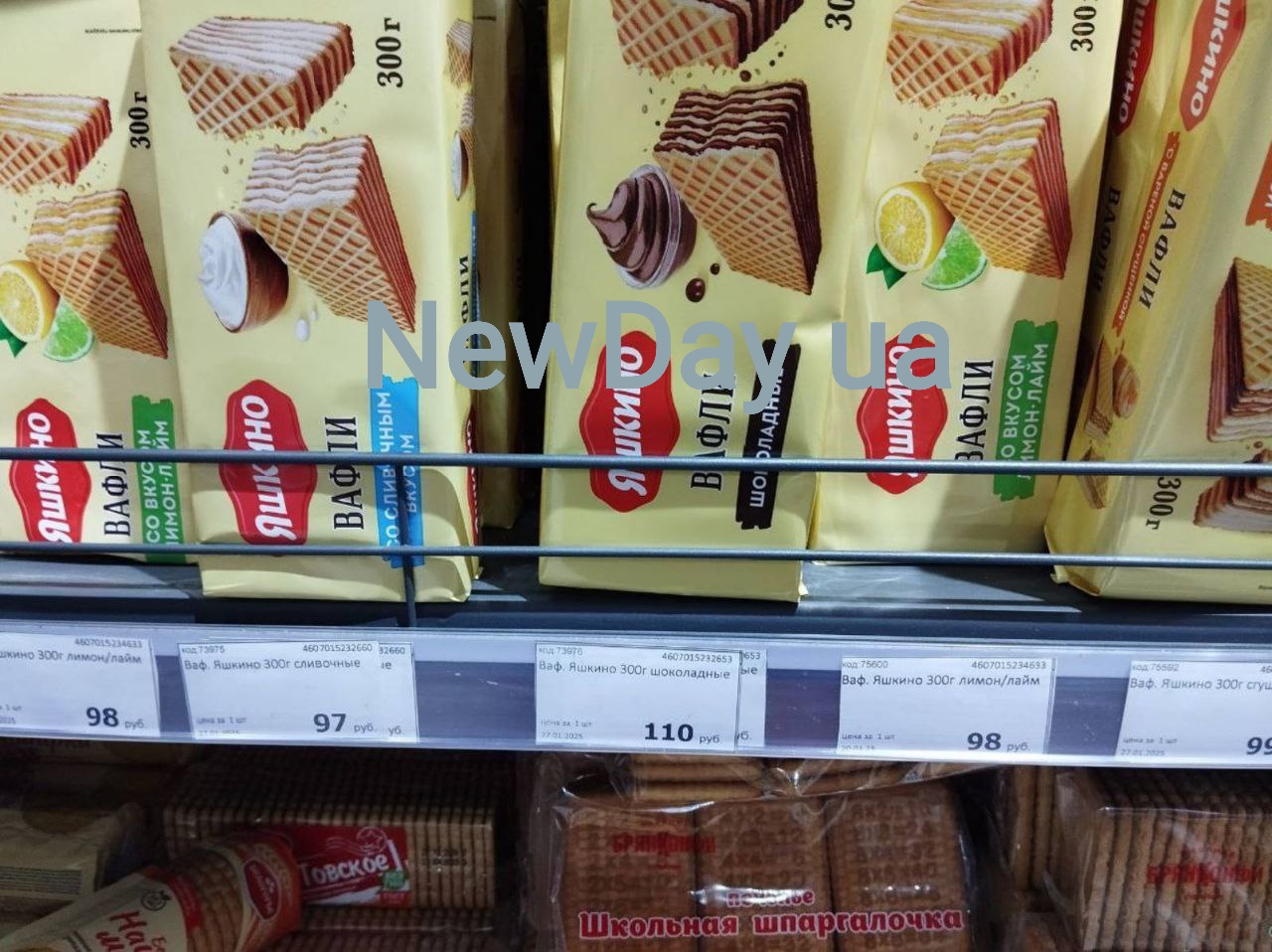 Вафлі продають від 97 (з вершковим смаком) до 110 (шоколадні) рублів.