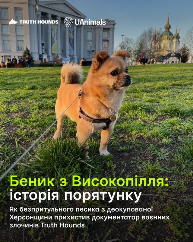 Документатор воєнних злочинів із команди Truth Hounds під час місії на Херсонщині у Високопіллі знайшов і забрав до себе покинуту собаку.Про це йдеться на сторінці Truth Hounds.Його вперше побачили біля пошкодженої гімназії, коли збирали свідчення. Саме тоді серед зграї безпритульних собак, побачили невеликого песика. Тоді жартома його назвали Беником Кронауським.