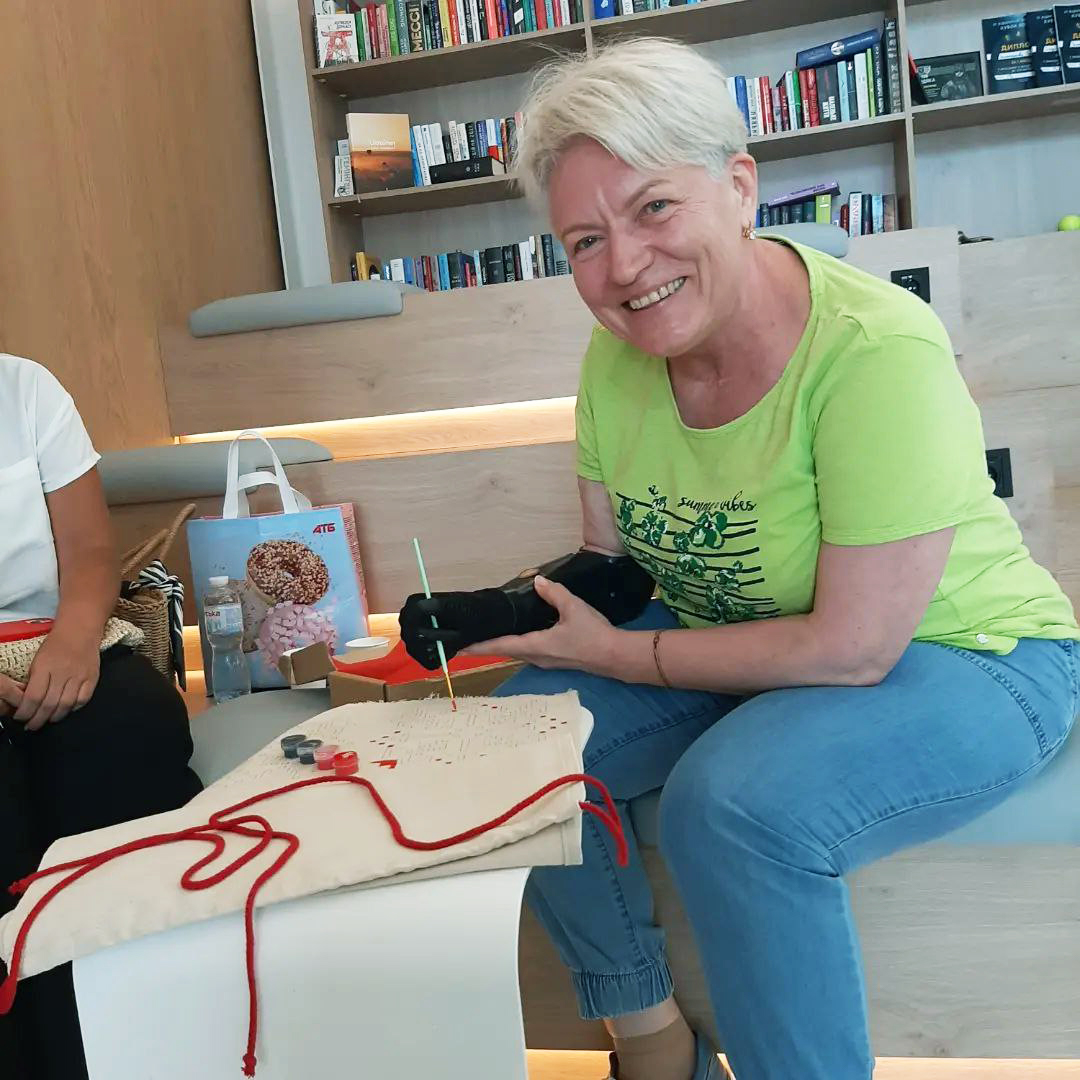 Лариса Цуріка випробовує свій біонічний протез. Фото з архіву героїні