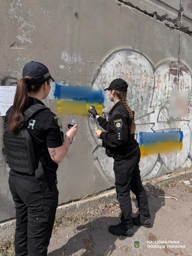 Працівники поліції провели рейд вулицями Центрального району міста, щоб виявити та знищити написи з рекламою каналів, через які розповсюджуються наркотики. Аби привернути увагу молоді, наркоторговці використовують різноманітні способи, зокрема – графіті з назвами «магазинів» у месенджерах.Про це звітує пресслужба поліції Херсонської області.За допомогою балончиків із синьою і жовтою фарбами працівниці ювенальної превенції та Управління боротьби з наркозлочинністю замалювали ці написи на парканах, фасадах будівель та зупинках громадського транспорту.