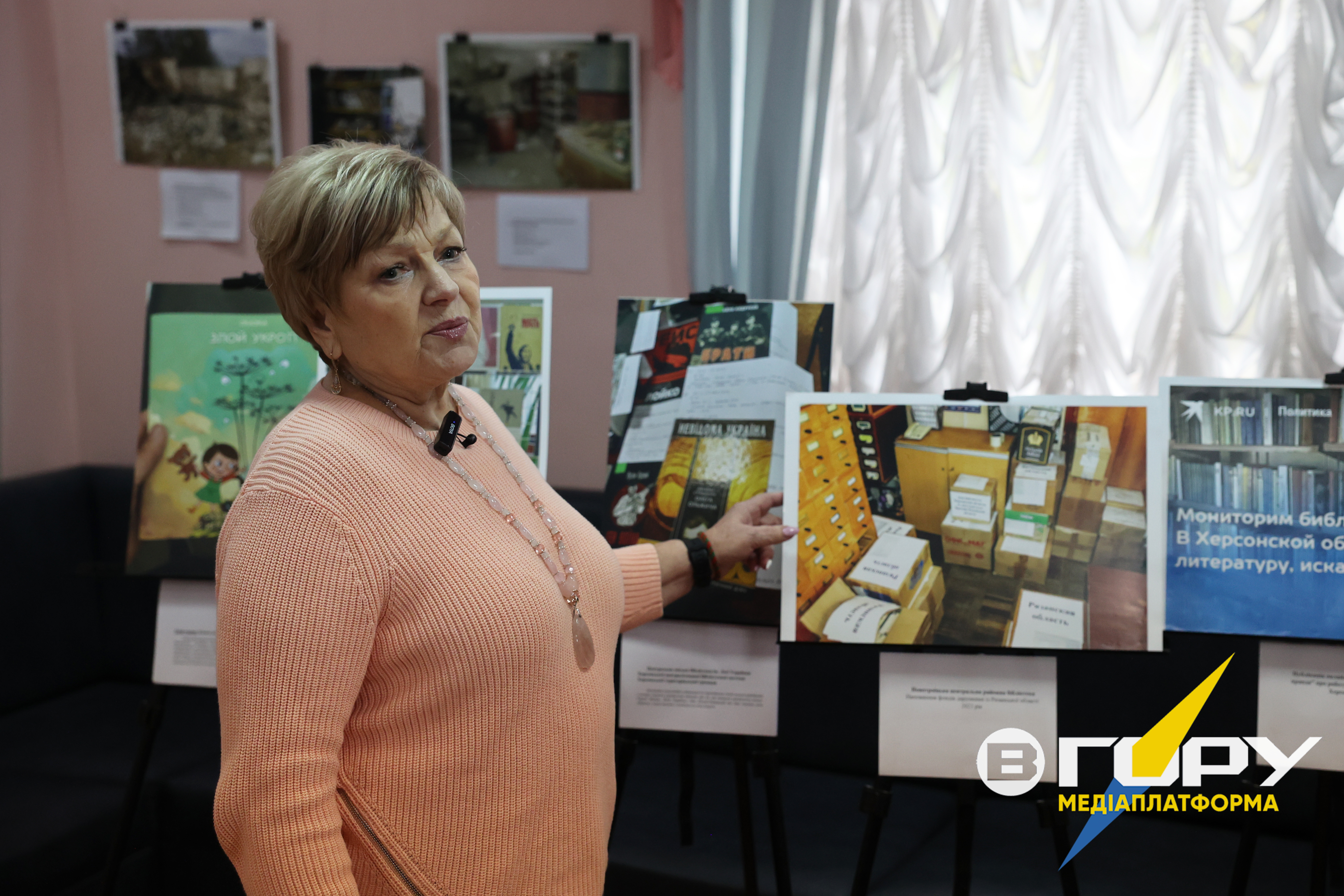 У приміщенні Херсонської центральної бібліотеки для дітей 25 жовтня відбулась презентація документальної фотоекспозиції “Бібліотеки Херсонщини: злочини Росії проти культури України”.Кореспонденти “Вгору” відвідали захід.Ця фотоекспозиція розповідає сорок різних фотоісторій про бібліотеки Херсонщини.“Головна мета цього проєкту – представити реальну картину культурного геноциду та надати розуміння того, як бібліотеки переживали та переживають цей час, та яку цілеспрямовану політику знищення української ідентичності проводить РФ”, - зазначають організатори.