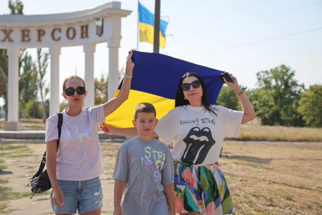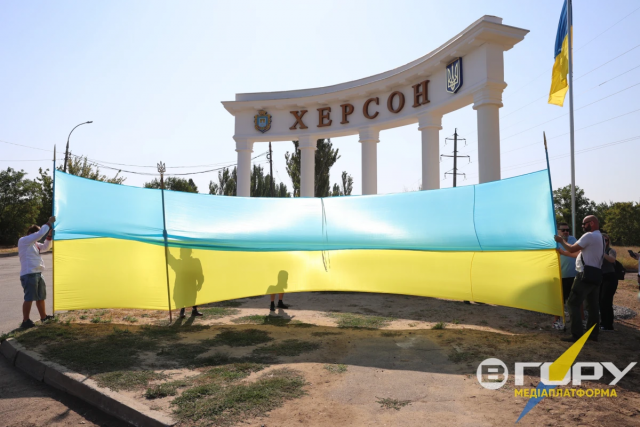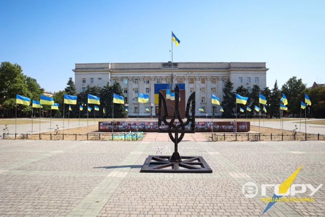 23 серпня у Херсоні відсвяткували День Державного прапора України. Кореспонденти “Вгору” зробили фото в місті. На стелі, яка розташована на в'їзді в Херсон, підняли Державний прапор. Також на площі Свободи встановили Тризуб. А жителі та гості міста співали гімн.