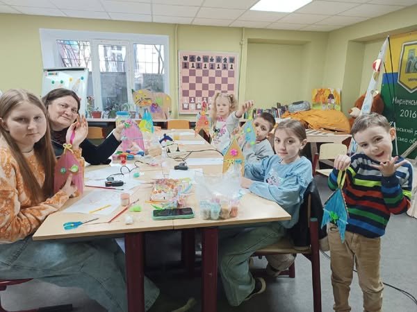 Під час заняття юні переселенці власноруч виготовляли яскраві вироби з різноманітних матеріалів.