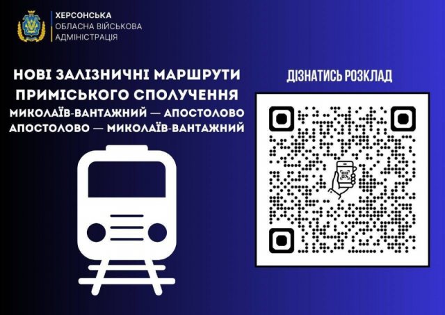 Укрзалізниця запускає нові залізничні маршрути приміського сполучення - цими рейсами можна буде добратися з населених пунктів деокупованих Калинівської, Великоолександрівської та Високопільської громад Херсонщини до Миколаєва та інших населених пунктів.Як передає Укрінформ, про це повідомляє Херсонська ОВА.«Відсьогодні Одеська регіональна філія Укрзалізниці запускає нові залізничні маршрути приміського сполучення Миколаїв Вантажний – Апостолове та Апостолове – Миколаїв Вантажний», - ідеться у повідомленні.