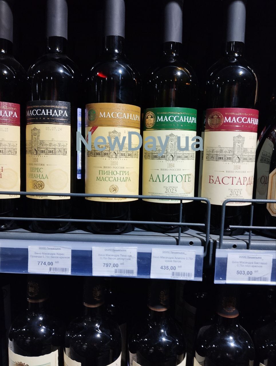 Широко на полицях представлені вина з сусіднього окупованого Криму. «Масандра аліготе», наприклад, коштує 435, «Масандра Піно-грі» – 797 рублів за пляшку.
