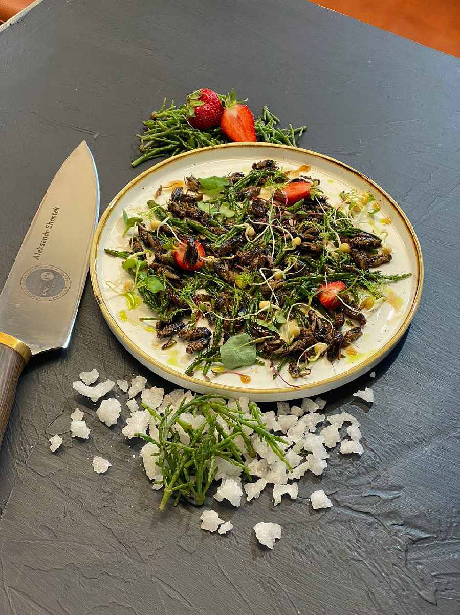 Страва з цвіркунів шеф-кухаря ресторану «Мускат» Олександра Шостака, приготована на одному з конкурсів