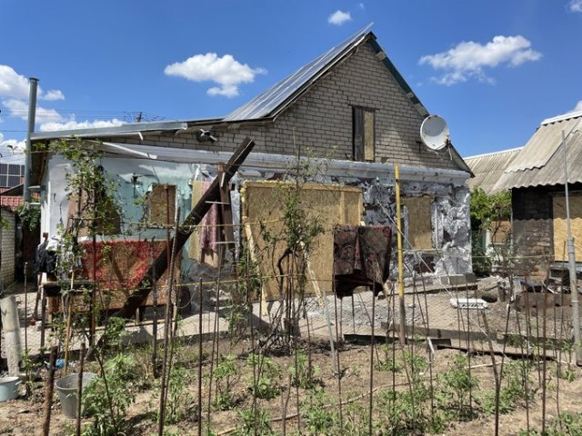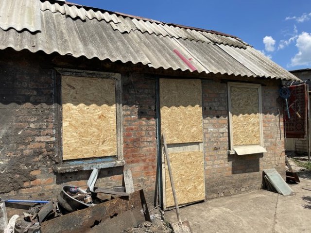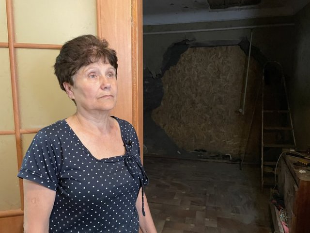 Капітальний ремонт, каже жінка, поки робити не будуть – не мають грошей та й побоюються чергового обстрілу.