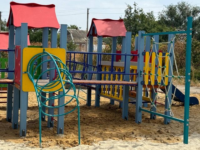 Тисячі дітей отримали гуманітарну допомогу та подарункиВ період з квітня до листопада 2024 року Всеукраїнським Благодійним Таврійським Фондом спільно з The EBRD Community Initiative надана допомога у 14 населених пунктах 10 територіальних громад Херсонської області.Так у с. Нова Кам’янка Милівської ТГ встановлено вуличний ігровий майданчик та передано портативну акустичну систему з мікрофонами.