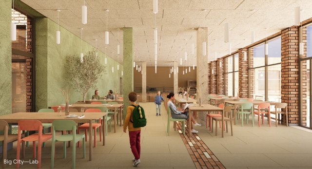 “Навчальний рік складає 175 днів, з 8 ранку до 16:00 — в інший час школа закрита. Але навіть під час навчального року деякі простори використовуються 5-10 разів — наприклад, актова зала для урочистих подій або бібліотека для видачі і здачі книжок. Ми спроєктували будівлю таким чином, щоб максимізувати використання кожного квадратного метру протягом всього року — і вдень, і ввечері, і в будні, і на вихідних”, — пояснює Вікторія Тітова, СЕО урбан-бюро повного циклу Big City Lab.