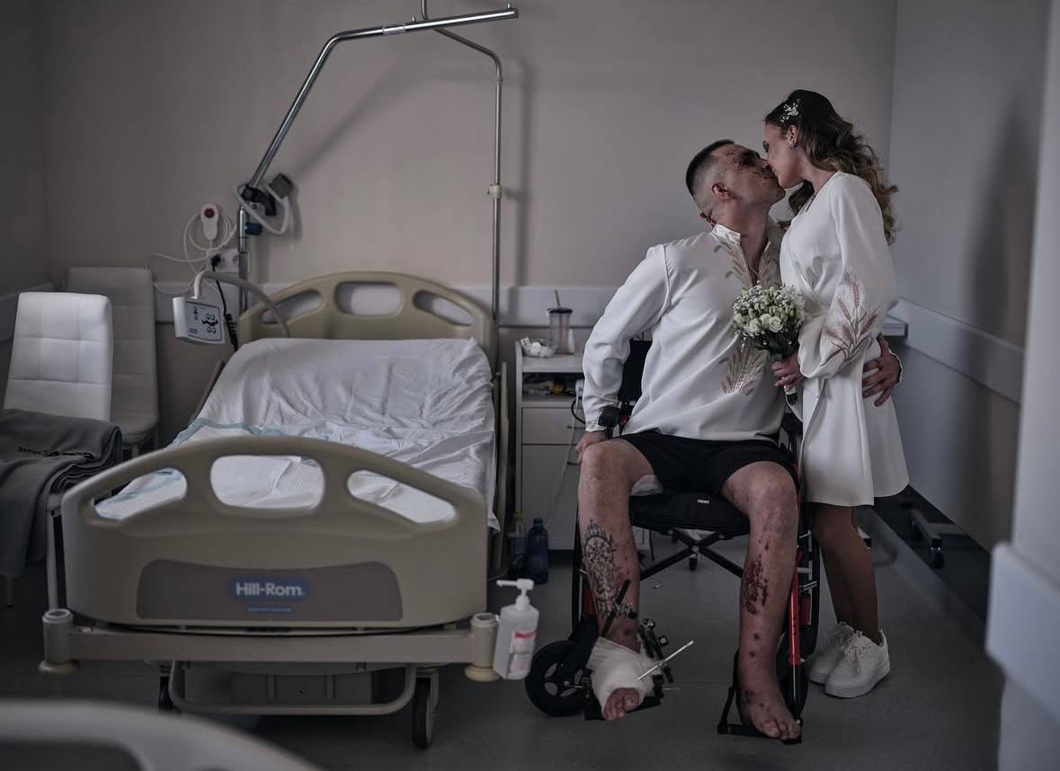 Вони одружилися в березні у вузькому колі близьких. Замість омріяних урочистостей в РАГСі – скромна церемонія в центрі протезування та реабілітації “Superhumans” на Львівщині, де продовжують лікування поранені військові. Весілля планували заздалегідь, та попри важкі фронтові травми нареченого, вирішили не зволікати. Журналісти Вгору дізналися історію військовослужбовця з Херсонщини Михайла та його дружини Владислави.