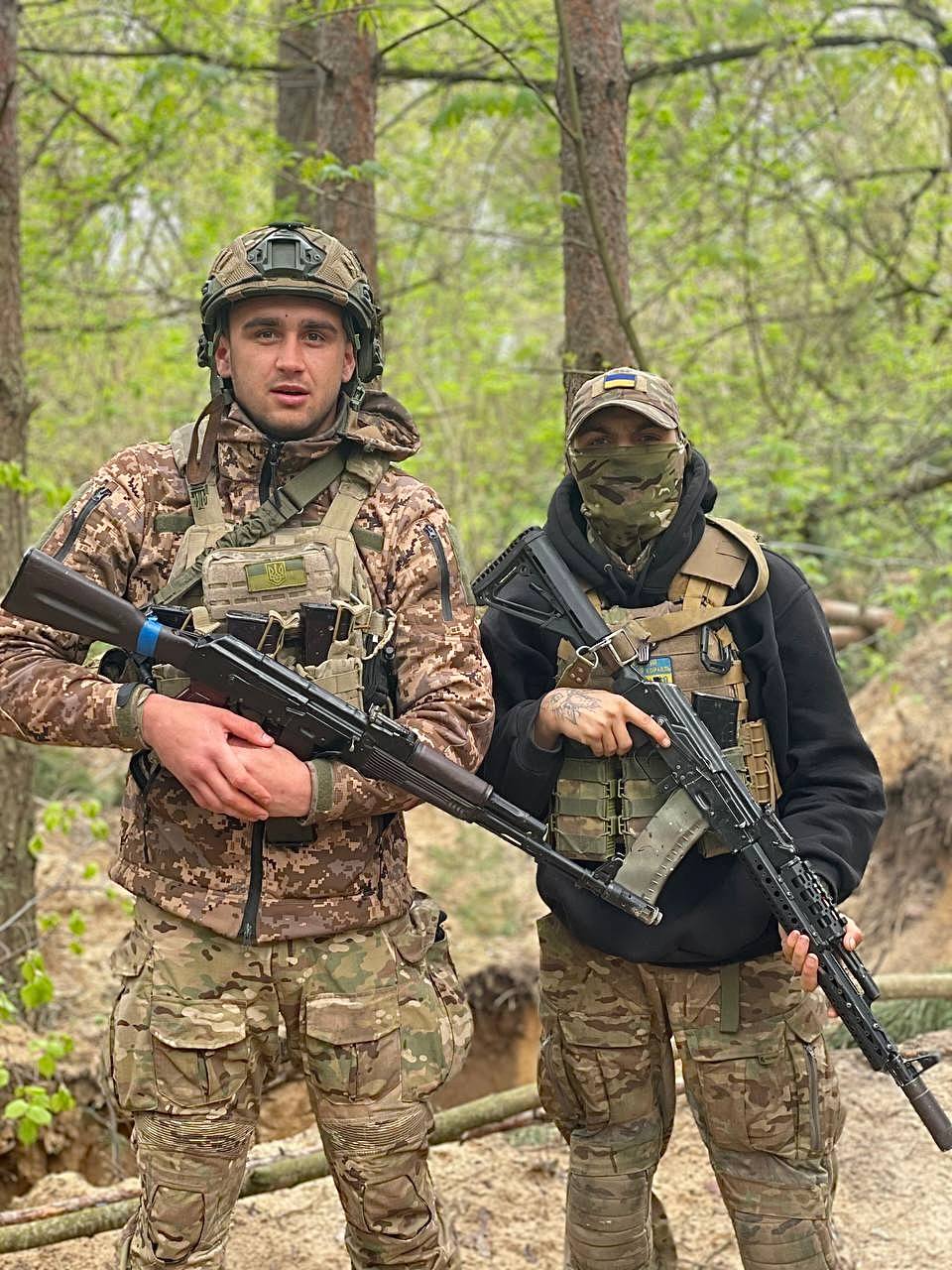 Михайло з побратимом на позивний Ворон під час служби на кордоні Чернігівщини. Фото з особистого архіву подружжя.