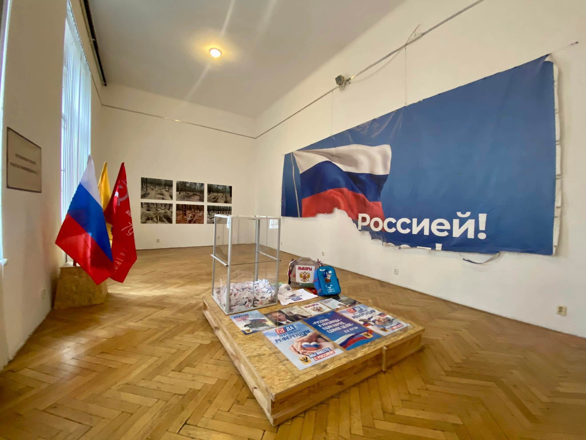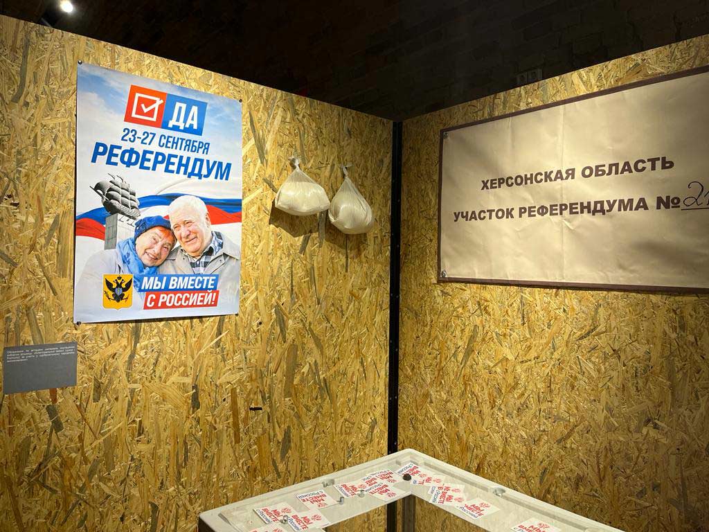 Серед експонатів, привезених з Херсона після деокупації, було багато таких, які стосувалися псевдореферендуму: від моря пропагандистської агітаційної літератури до атрибутики процесу референдуму (таблички з дільниць, урни, пакети для опломбовування, пломби, навіть «фірмові» кепка та футболка).