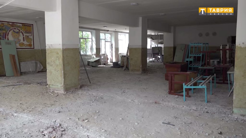 Міська окупаційна адміністрація найняла підрядників, які зняли покрівлю, але потім замість того, щоб її перекрити, взялися за ремонт внутрішнього оздоблення будівлі. Школа стояла розкритою деякий час, а 11 серпня 2023 року в Генічеську пройшли сильні зливи, і увесь внутрішній ремонт, який робила російська організація, зійшов нанівець. Більше того, обвалилась стеля, і вода пройшла до першого поверху.