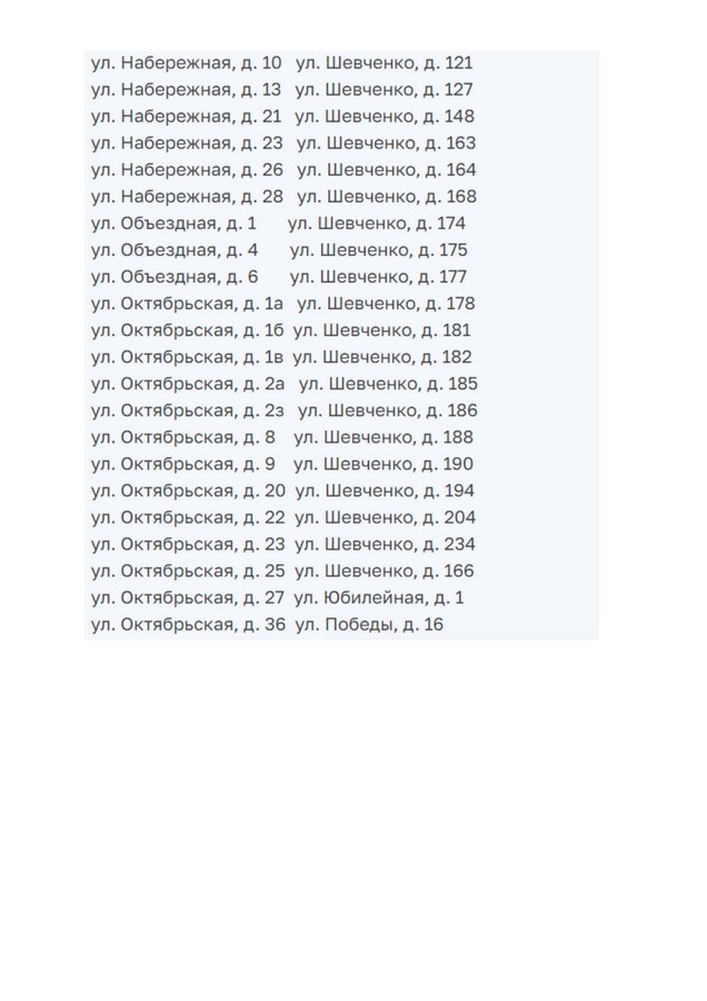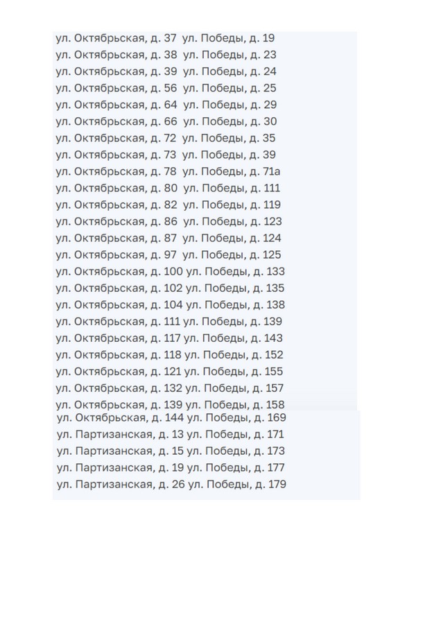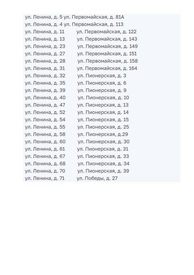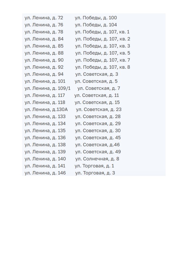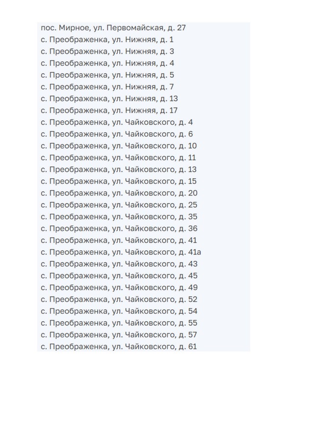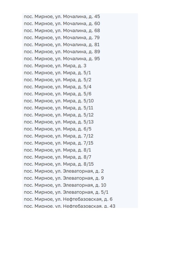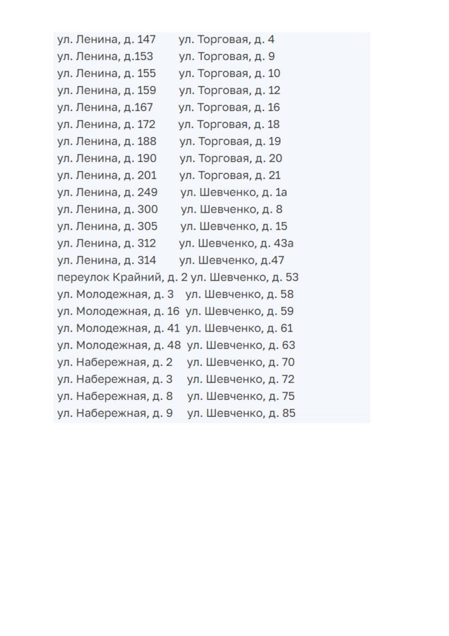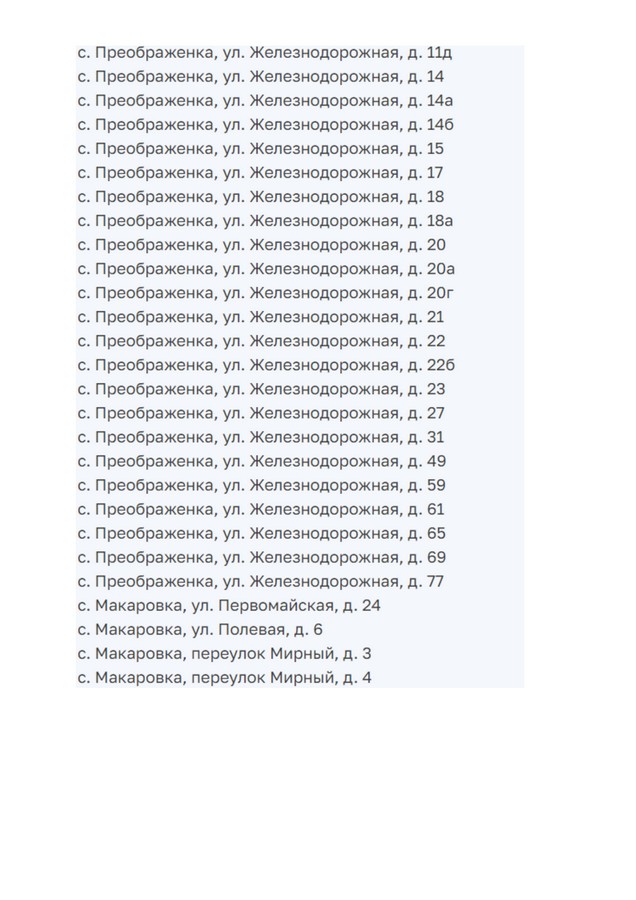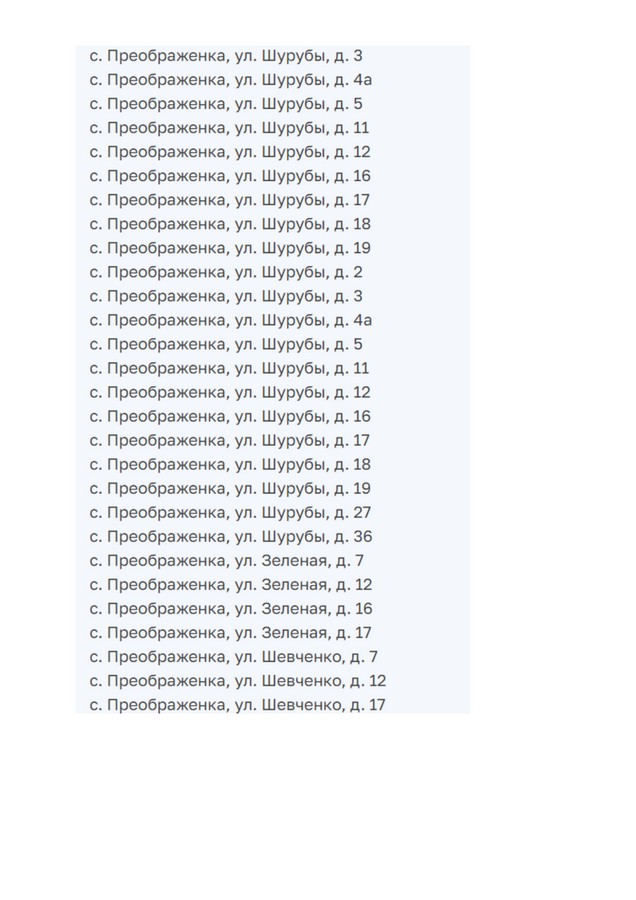 У списку вказані 324 адреси у Горностаївській селищній громаді Каховського району. Окупанти вказали лише назви вулиць і номери будинків, без назв населених пунктів. Вочевидь, значна частина цих адрес стосується самої Горностаївки.