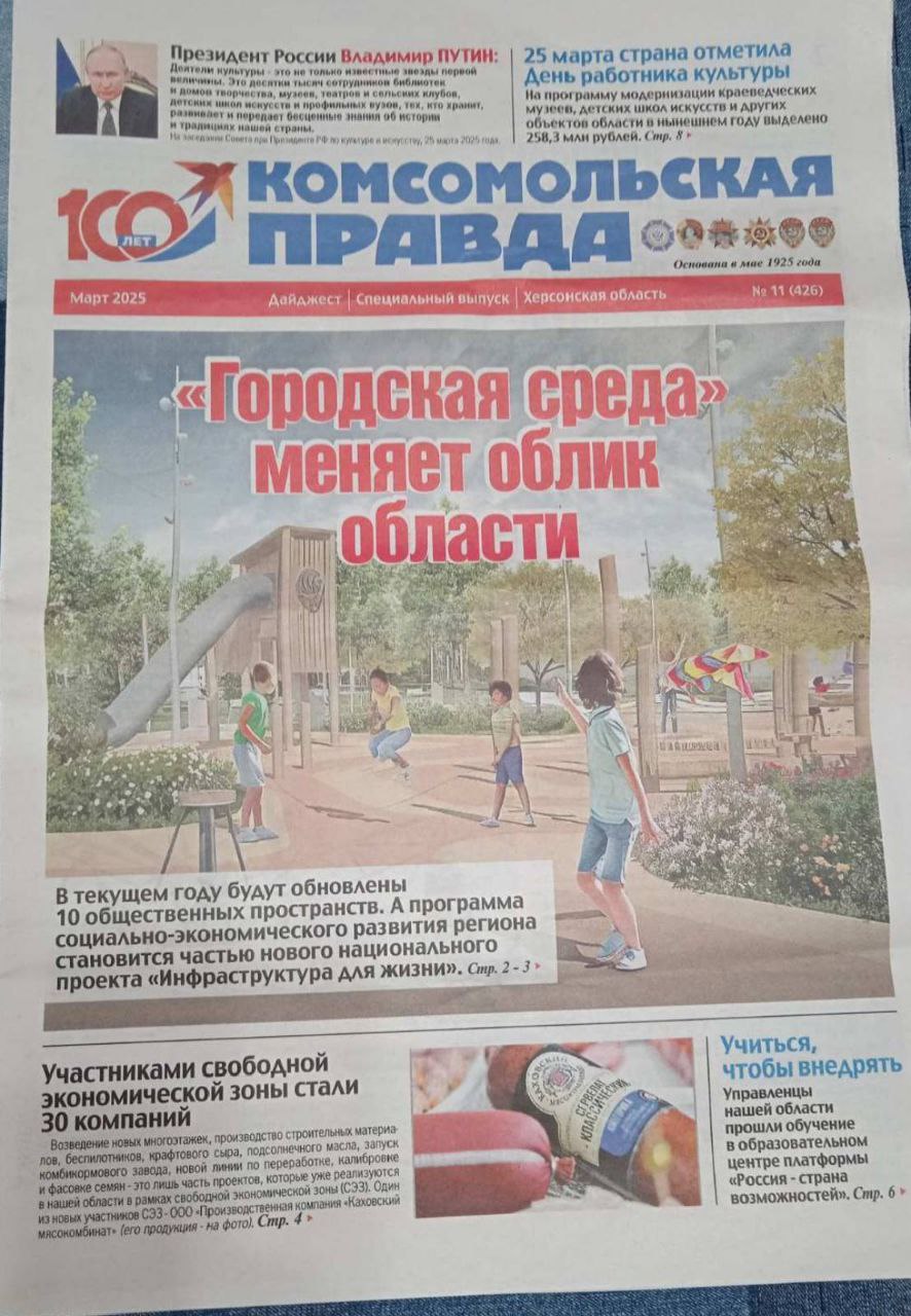 «З регіональних газет «Надднепрянская правда» і «Комсомольская правда» місцеві жителі завжди можуть отримати актуальну інформацію про важливі події громадського життя регіону, актуальні новини та ініціативи місцевої адміністрації, – повідомляє телеграм-канал окупаційної адміністрації Голопристанського «муніципального округу». – Нагадуємо про те, що видача газет відбувається у громадських місцях і адміністративних спорудах сільських поселень».