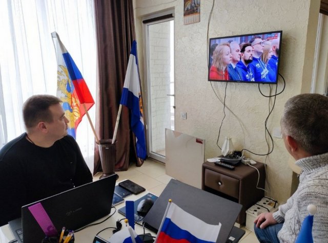 Аби бубоніння кремлівського старця почули якомога більше людей, «єдинороси» облаштували на лівобережжі 19 майданчиків для відеоперегляду. Вірніше, написали, що облаштували. Де саме вони знаходились, не повідомляли. Зате колаборанти дивились на свого кумира всі, як один.