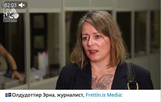 Відвідала Херсонщину також “спостерігач” від Ісландії Ерна Олдудоттір. Росіяни позиціонують її як журналістку одного з ісландських видань Frettin.is Media. Це видання й справді існує та є компіляцією фейкових новин і проросійських наративів з усього світу. Велику увагу тут, звісно, приділяють і Україні. Пані Олдудоттір пише про провал українського контрнаступу, законність псевдореферендумів і про “українських нацистів”.