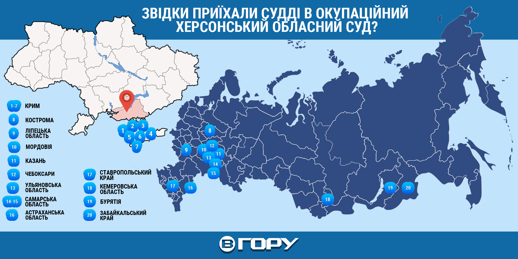 Звідки приїхали судді в окупаційний Херсонський обласний суд. Інфографіка “Вгору”
