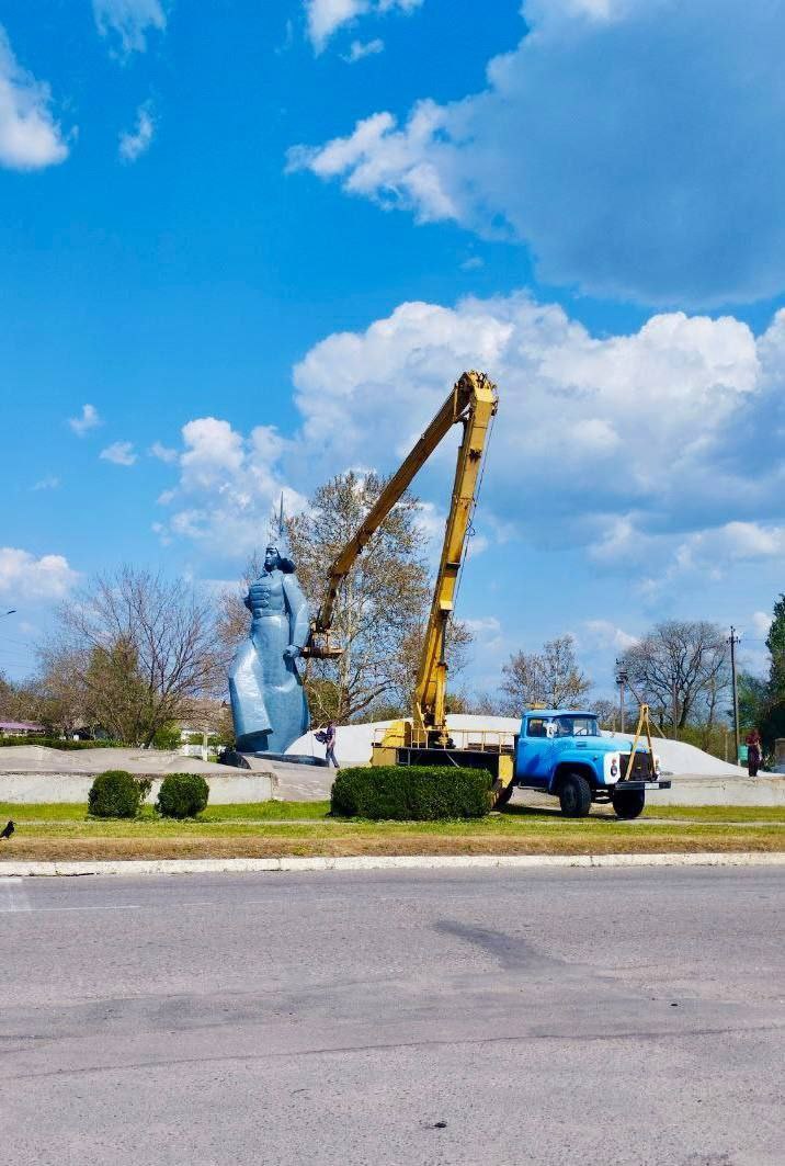 «Сьогодні жителі округу з жахом побачили, як один з символів Легендарної Каховки, пам’ятник «Дівчина у шинелі», було варварськи пофарбовано, – написав 27 квітня окупаційний телеграм-канал «Каховский Городской Быт». – Враховуючи, що жодна дія у місті не відбувається без згоди дистанційного Філіпчука, виникають серйозні питання: хто надоумив його та цей крок і з якою метою його було вжито».