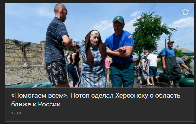 Проваливши евакуацію населення з підтоплених територій, росіяни звинуватили в цьому українську сторону. Російські медіа стверджують, внаслідок не скоординованих дій української влади, на правобережжі Херсонщини загинуло кілька десятків мирних жителів. Однак ніяких доказів цьому не наводиться. Водночас, за даними Херсонської обласної військової адміністрації, під час рятувальної операції у Херсоні справді загинуло близько 10 людей, та більшість з них – через обстріли росіянами місць евакуації, чому є документальні підтвердження.Паспорт або смерть!