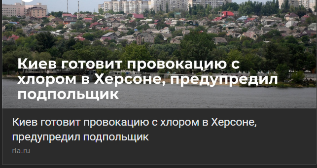 Інша біда, якою російські пропагандисти лякають херсонців, не наводячи ніяких доказів, – загроза хлорної атаки. За інформацією російських творців фейків, українці розташували поблизу херсонського автовокзалу каністри з хлором та планують їх підірвати. Звісно, самі херсонці цей фейк спростовують, повідомляючи, що ніяких ємностей з хімічними речовинами у місті не помічено.Примарне зрошування за 500 мільярдів на Запоріжжі