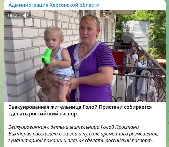 Евакуйовані з зони підтоплення херсонці розповідають про бажання отримати російський паспорт