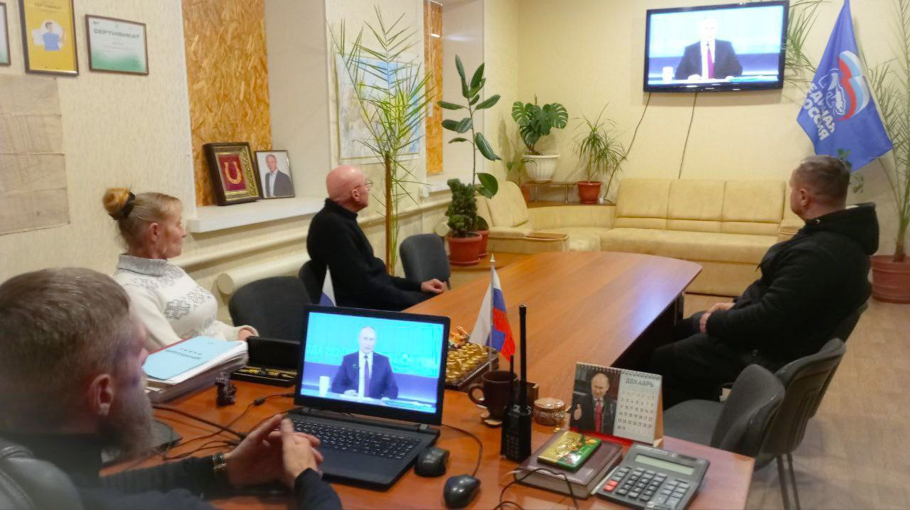 На черговий прояв масового психозу перетворилась телетрансляція «прямої лінії» з Путіним на окупованому лівобережжі Херсонщини. Колаборанти дивились його в «адміністраціях» і «територіальних управліннях», змушували дивитись кремлівського пенсіонера школярів.Самозванці з «обласної думи» колективно споглядали свого Путіна на екрані у сесійному залі захопленої окупантами Генічеської районної ради.
