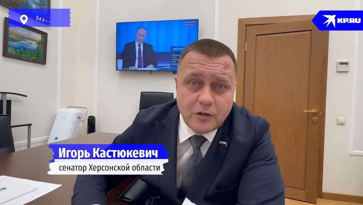 А от «сенатор» Ігорь Кастюкєвіч під час такої «важливої події» все ж вирішив пожартувати. «Отримав вісточку від наших людей в окупованому фашистами російському Херсоні, – сказав він на відео. – Їм трансляція доступна через ютуб. Незважаючи на всі тяготи і те, що доводиться дивитись спілкування Владіміра Путіна з жителями крадькома, вони не втрачають надії на скоре повернення Херсона у Росію. Впевнений, так і буде. І вони зможуть побачити пряму лінію з Президентом Росії відкрито і по телевізору».