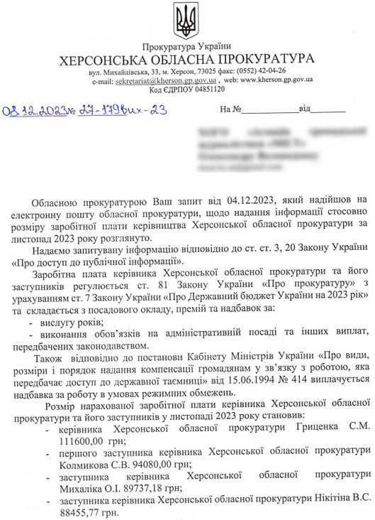 Раніше повідомлялось про те, що за жовтень керівники Херсонської обласної прокуратури заробили більше 380 тисяч гривень.