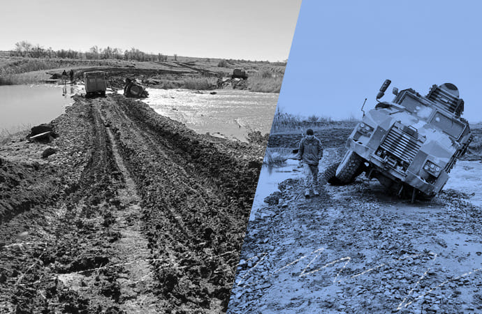 Загалом окупанти мали вигідніше розташування відносно річки – їхній берег був вищим. Кожне українське авто, яке заїжджало у Велике Артакове, становило для них мішень, яку було добре видно.Через постійні обстріли й повсюдні уламки військові використовували тільки вживані шини на авто.