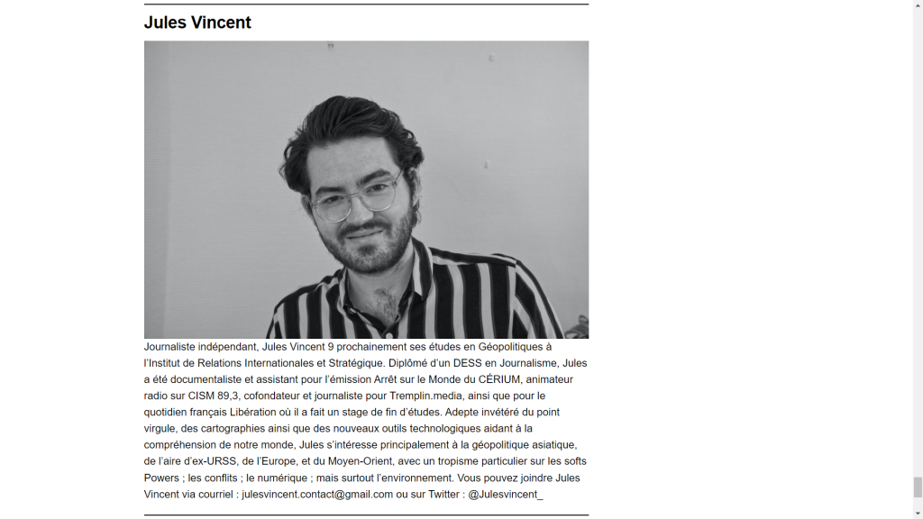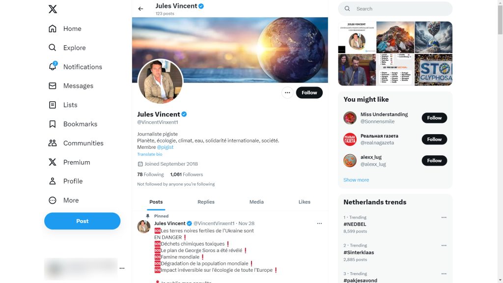 У Франції дійсно є журналіст Жуль Венсент. Але він не позиціонує себе як екоактивіст. З інформації, наявної в мережі, можна дізнатися, що він «цікавиться передусім геополітикою Азії, територією колишнього СРСР, Європою та Близьким Сходом».