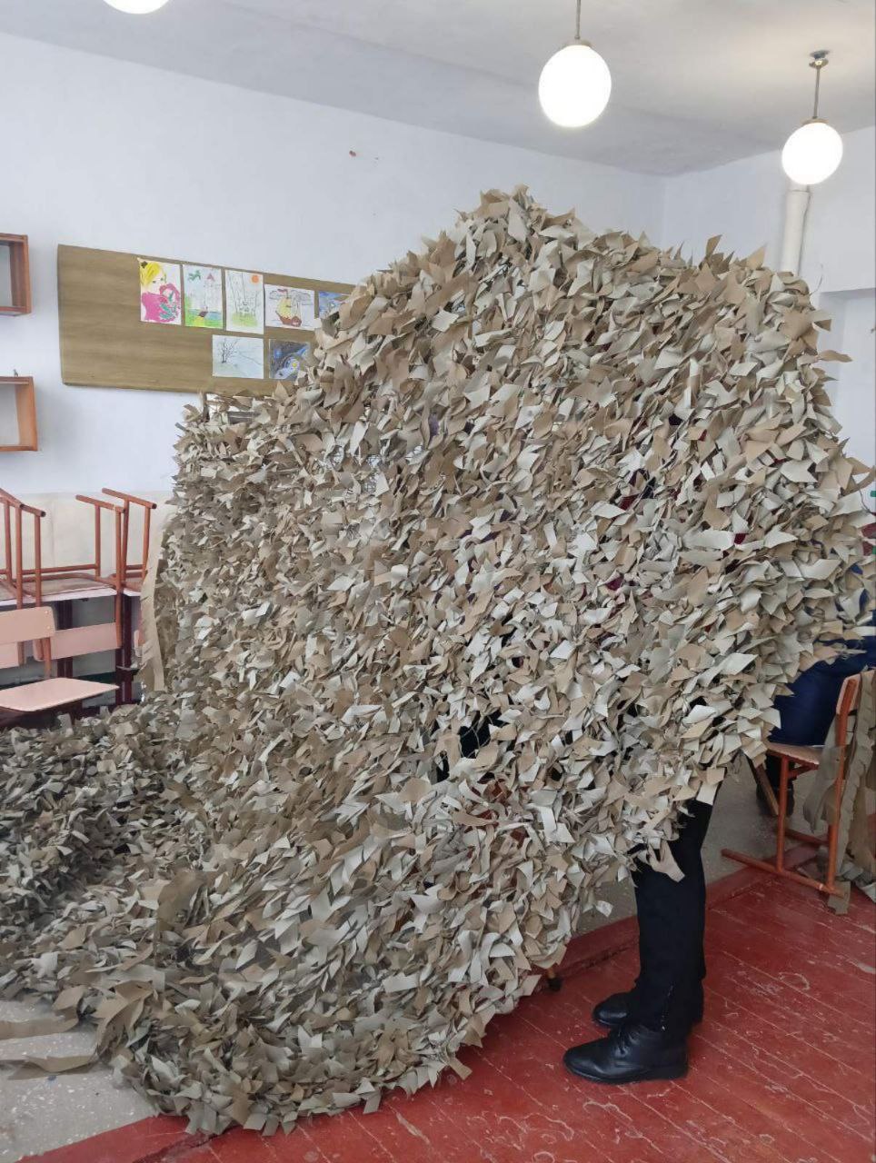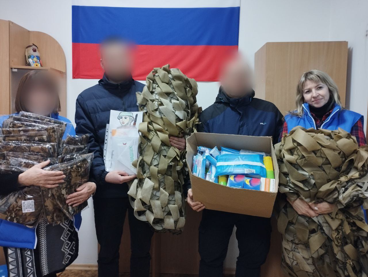 «Допомога не припиняється! У рік захисника Вітчизни каховські жінки продовжують плести маскувальні сітки, вкладаючи у кожну петлю тепло і турботу для учасників СВО», – написала окупаційна адміністрація Каховського «муніципального округу» про те, як декілька членів «територіальних громадських самоуправлінь» передали на передову окупантам дві сітки, ящик медикаментів, балаклави і листи.