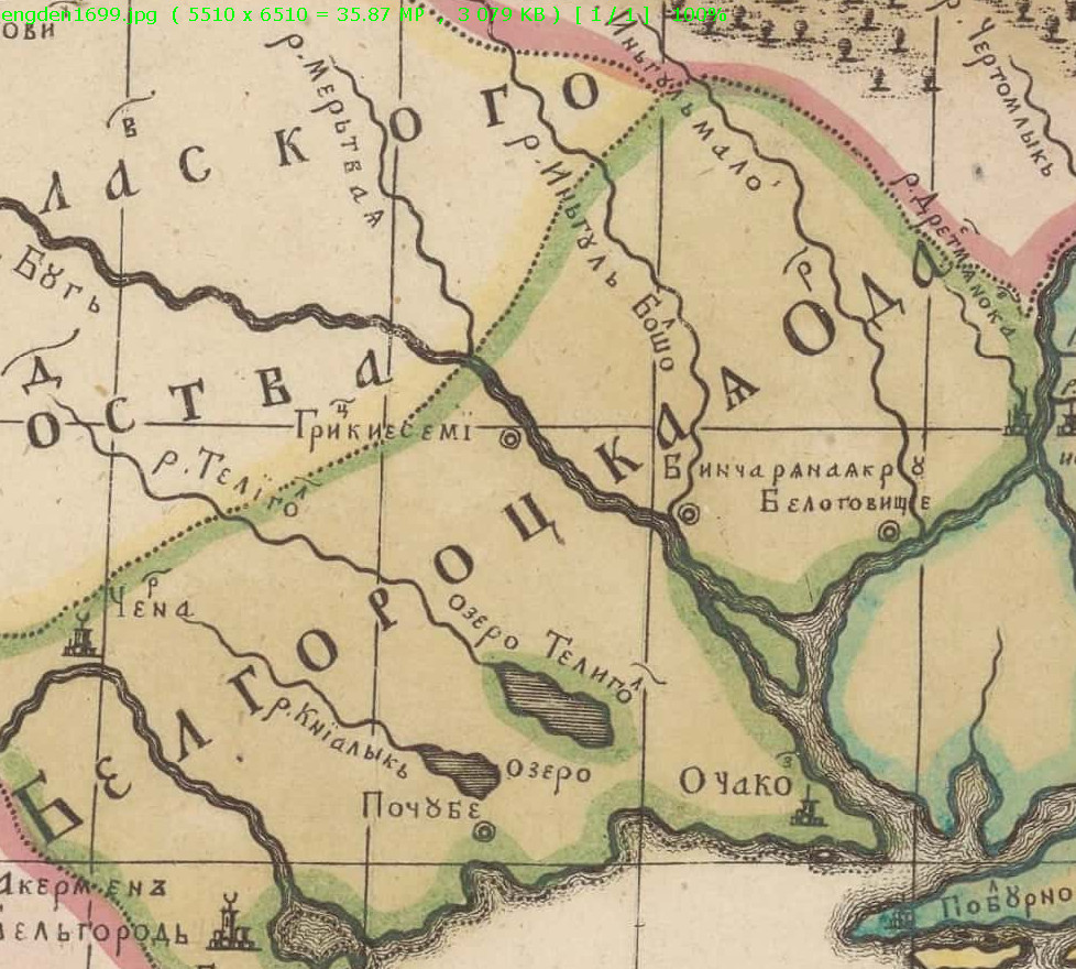 Біліховичи («Белоговище») на «Географічній карті країн Малої та Великої Руссії» 1699 року, Джорджа фон Менгдена та Якова Брюса