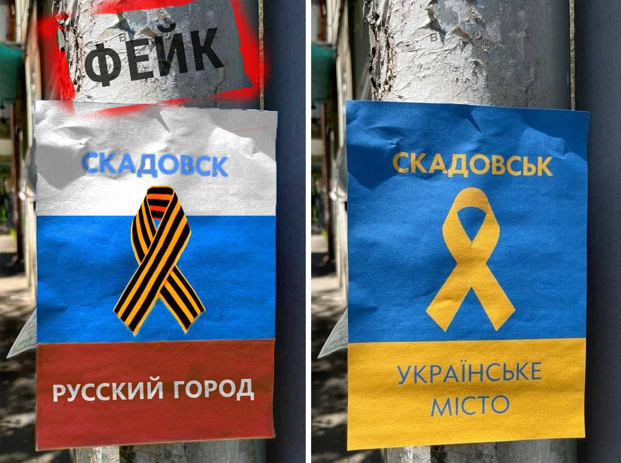 Російські ресурси поширюють фото, які нібито були зроблені в Херсоні. На них написи “Херсон — Росія” та “Скадовск — русский город” з зображенням георгіївської стрічки. Окупанти пишуть, що агітки нібито розміщені на “інфраструктурі, яка розвалюється від безгосподарності”, а на їхню появу ніхто не реагує. Медіаплатформа “Вгору” розбирається, чому це — черговий фейк росіян.