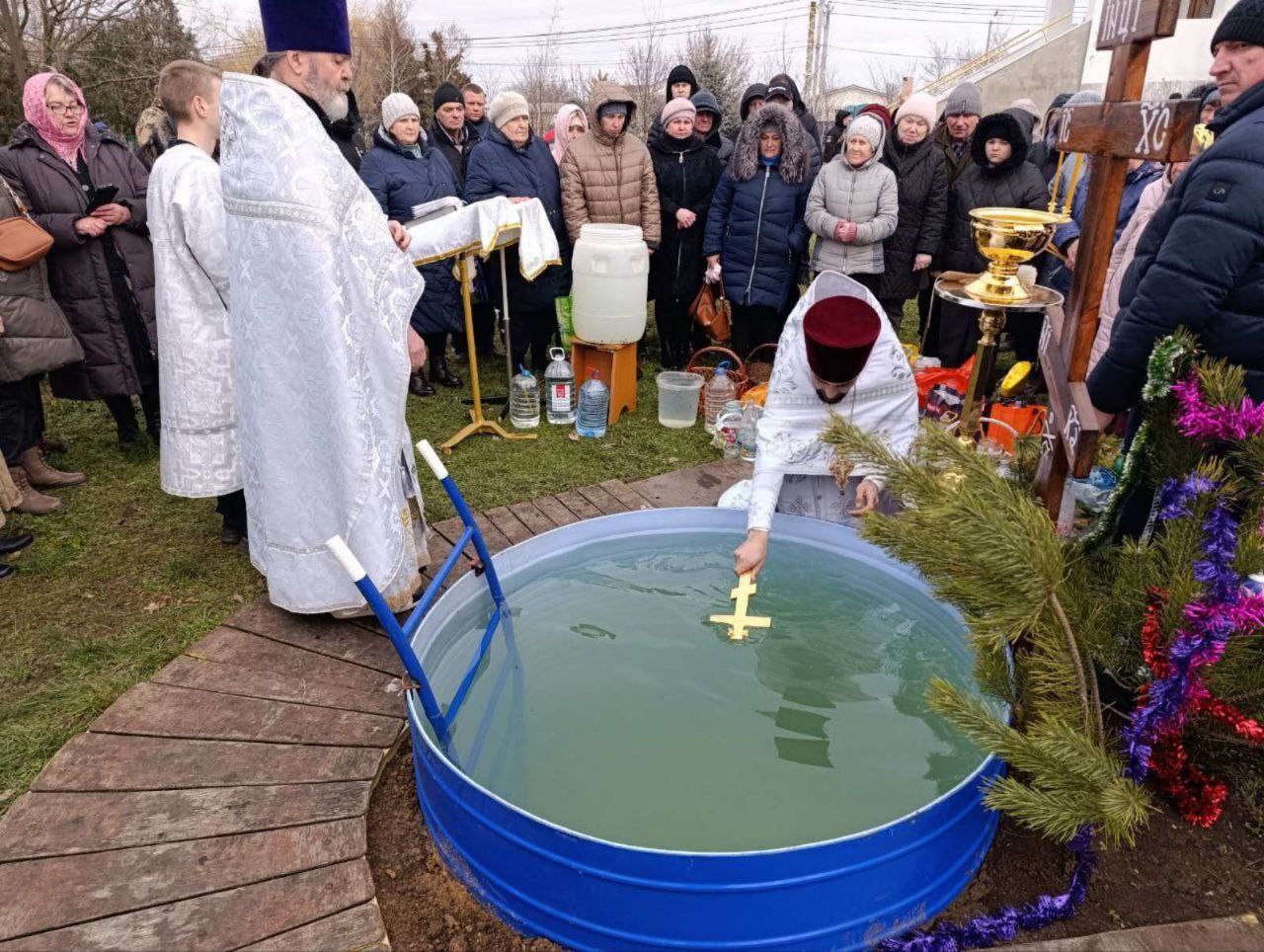 У Залізному Порті Голопристанського «муніципального округу», за словами пропагандистів, «кожен бажаючий зміг пірнути у спеціально обладнану купель з освяченою водою». У її якості виступила величезна, вкопана у землю, бочка.