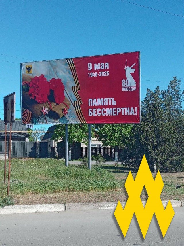 На тлі тиші та спорожнілих вулиць Скадовська окупаційна влада, схиблена на перемозі, розвішує по місту прапори, банери та бігборди із символікою Перемоги та гаслами часів Радянського Союзу, розповіли в АТЕШ.У мертвому місті вони намагаються оживити примари минулого, щоб приховати реальність сьогодення: люди поїхали, вулиці порожні, а страх повсюди. Рашисти принесли сюди не "визволення", а розруху, страх і відчуття безнадії. Центральні вулиці спорожніли, бізнес закрився, жителі — хтось поїхав, хтось ховається, хтось просто боїться. Ні "руський мір", ні триколірні ганчірки не можуть приховати факту: Скадовськ помирає під гнітом окупації, - йдеться у повідомленні.