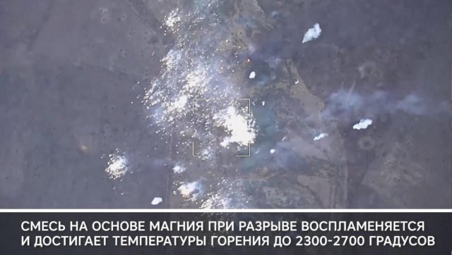 У тексті пропагандисти доповнюють, що використовуються снаряди на основі магнію, які при розриві загоряються і температура горіння доходить до 2300 - 2400 градусів Цельсія. І вони, мовляв, дуже ефективні у боротьбі з піхотою, бо випалюють окопи і бліндажі ЗСУ дощенту. Погодьтесь, що першим питанням, яке виникає, є: хіба така зброя не є забороненою? Звісно, російські пропагандисти переконують, що ні.