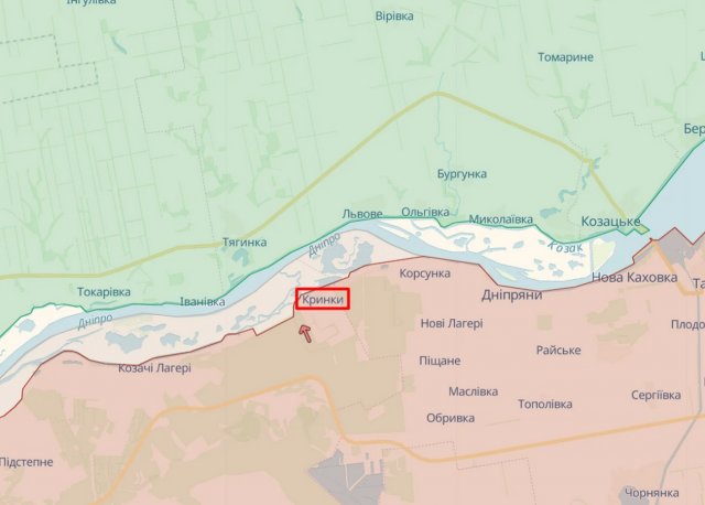 Кринки – село на лівому березі Херсонської області. Різні OSINT-дослідники фіксують частину населеного пункту або як сіру зону, або як звільнену українськими захисниками.