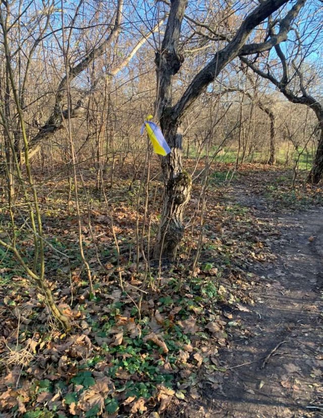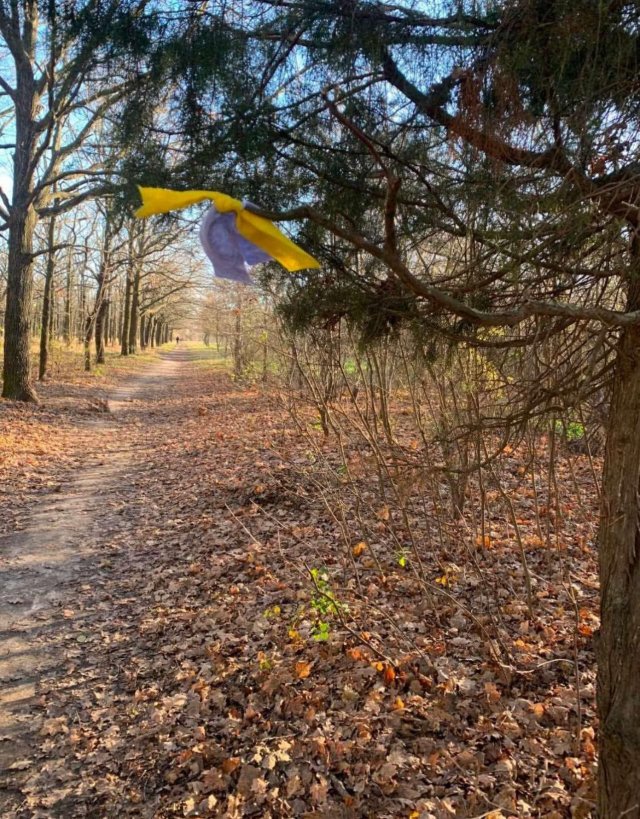 Цієї осені на окупованому лівобережжі Херсонської області місцеві жителі вже розповсюдили понад тисячі синьо-жовтих стрічок. Допомагають у цьому волонтери благодійного фонду Support Kherson.