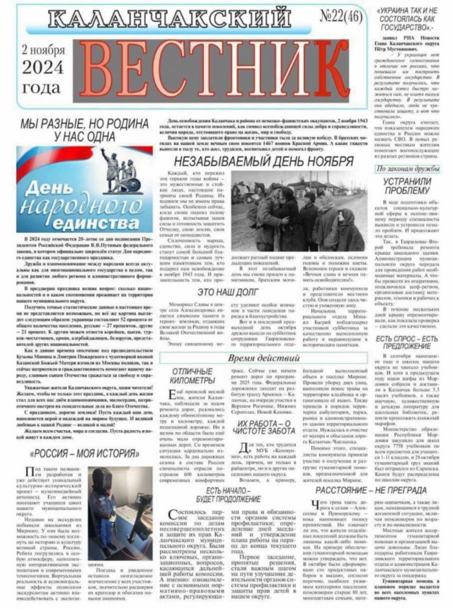 Напівправду іноді пише й інша окупаційна агітка - «Каланчакский вестник». До недавнього «дня народного єдінства» окупаційна редакторка Галина Єрмишко написала наступне: «Напередодні свята виникли питання: скільки національностей і у якому співвідношенні проживає на території нашого муніципального округу.