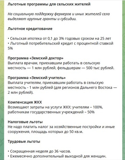 До прикладу, в оголошенні, опублікованому днями в одному з херсонських пропагандистських пабліків у Telegram, окупанти обіцяють «крупні гранти та субсидії» на «соціальну підтримку фермерів та інших жителів села». Пишуть одразу про декілька програм, серед яких – пільгові кредити, додаткові виплати й бонуси лікарям та вчителям, податкові пільги та інші обіцянки «райського життя» в селах окупованої Херсонщини.