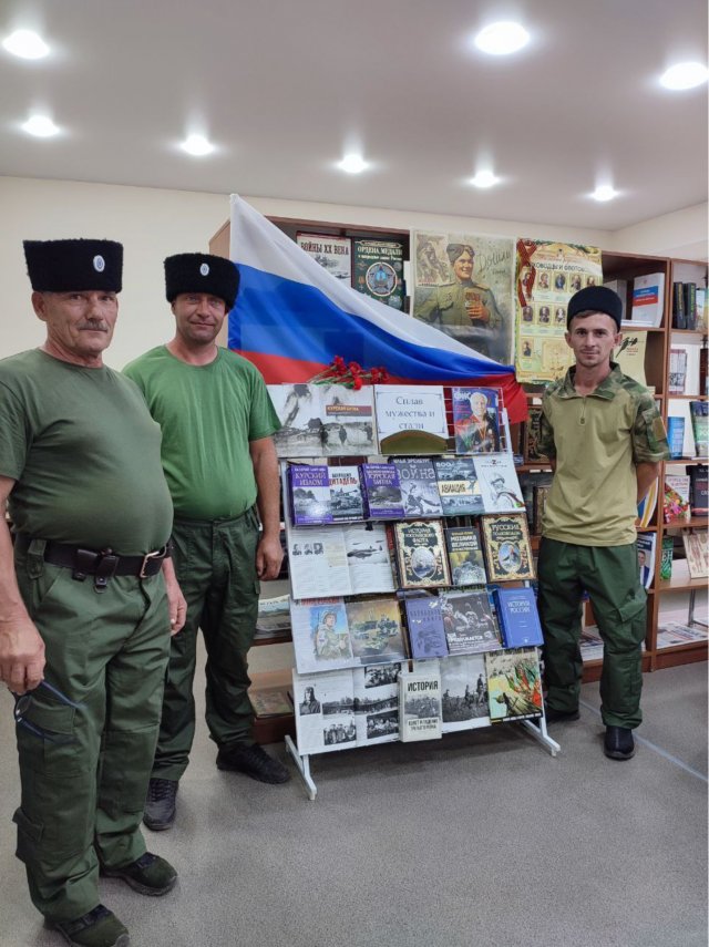 В окупаційній бібліотеці Новотроїцького до цієї дати влаштували така звану книжково-ілюстративну виставку «Сплав мужності і сталі». Одними з перших «читачів» на ній стали представники окупаційного козацтва.