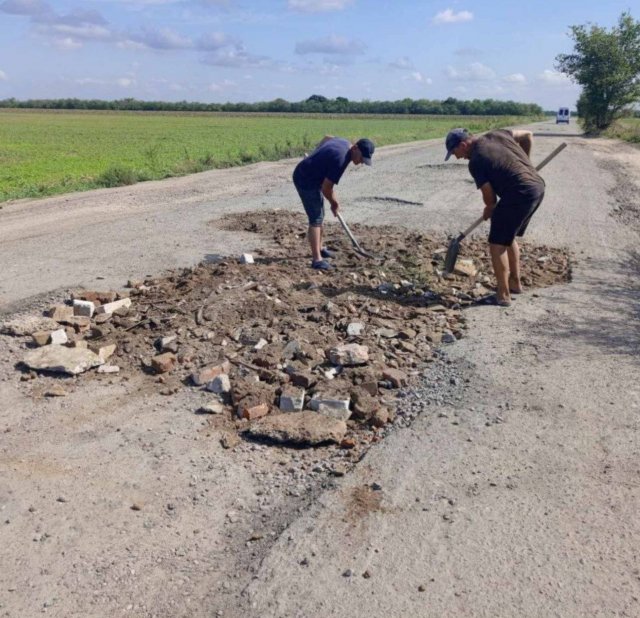 - У рамках заходів, що проводяться, засипають ями і вибоїни на дорогах щебнем, що у свою чергу дозволяє розрівняти значну частину пошкоджених ділянок».