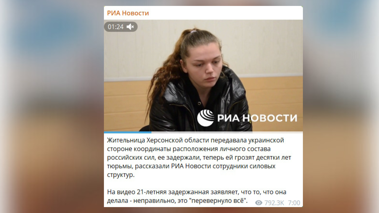 У грудні 2022 року в інтернеті поширили інтерв’ю, яке Аня дала російському медіа. У ньому дівчина розповідає, що шкодує про скоєне. У тексті до відео зазначалося, що Аня нібито передавала українській стороні координати розташування особового складу російських сил. Інформацію начебто надсилала “одному з адміністраторів українського націоналістичного ресурсу”.