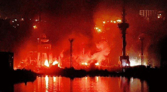 Пожежа на судноремонтному заводі після ракетної атаки у Севастополі, 13.09.2023 Фото: t.me/vchkogpu