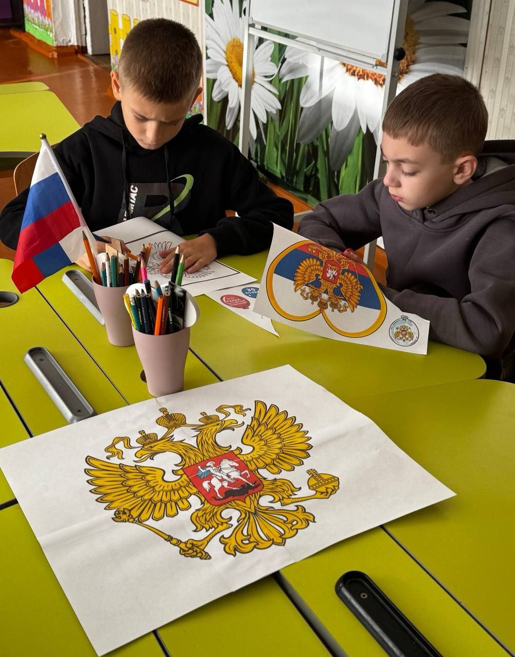 Святкувати день імперського гербу змусили навіть дітей прифронтової Нової Каховки. Вони, повідомили у Телеграм колаборанти, «виявили творчі здібності: розфарбовували герб РФ у правильні кольори». У далекому від фронту Генічеському районі дітей також «залучали до поважного ставлення до символіки РФ»: в окупаційному Павлівському СБК провели інформаційну годину, в окупаційній Рівненській бібліотеці слухали про історію герба, в окупаційному Олексіївському БК відбулась вікторина на цю тему.
