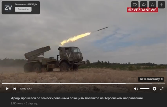 Насправді ж це звичайна брехня. 120-міліметрові міни, що випускають по Херсону росіяни, мають дальність ураження до 7 кілометрів. Цієї відстані достатньо, щоб мати змогу обстрілювати більшу частину міста. Крім того, окупанти б’ють по Херсону не лише з мінометів, а й із РСЗО, дальність якого є значно більшою. Наприклад, російський телеканал «Звєзда» у жовтні опублікував відео, на якому «Гради» обстрілюють правобережжя Херсонщини. Російські керовані авіабомби, що десятками летять на голови жителів правобережжя Херсонщини, взагалі можуть вражати цілі на відстані до 100 кілометрів. Такою бомбою, наприклад, на початку жовтня було уражено районну лікарню в місті Берислав. Окупанти досить часто самі вихваляються «точними попаданнями» по місту у своїх Telegram-каналах.