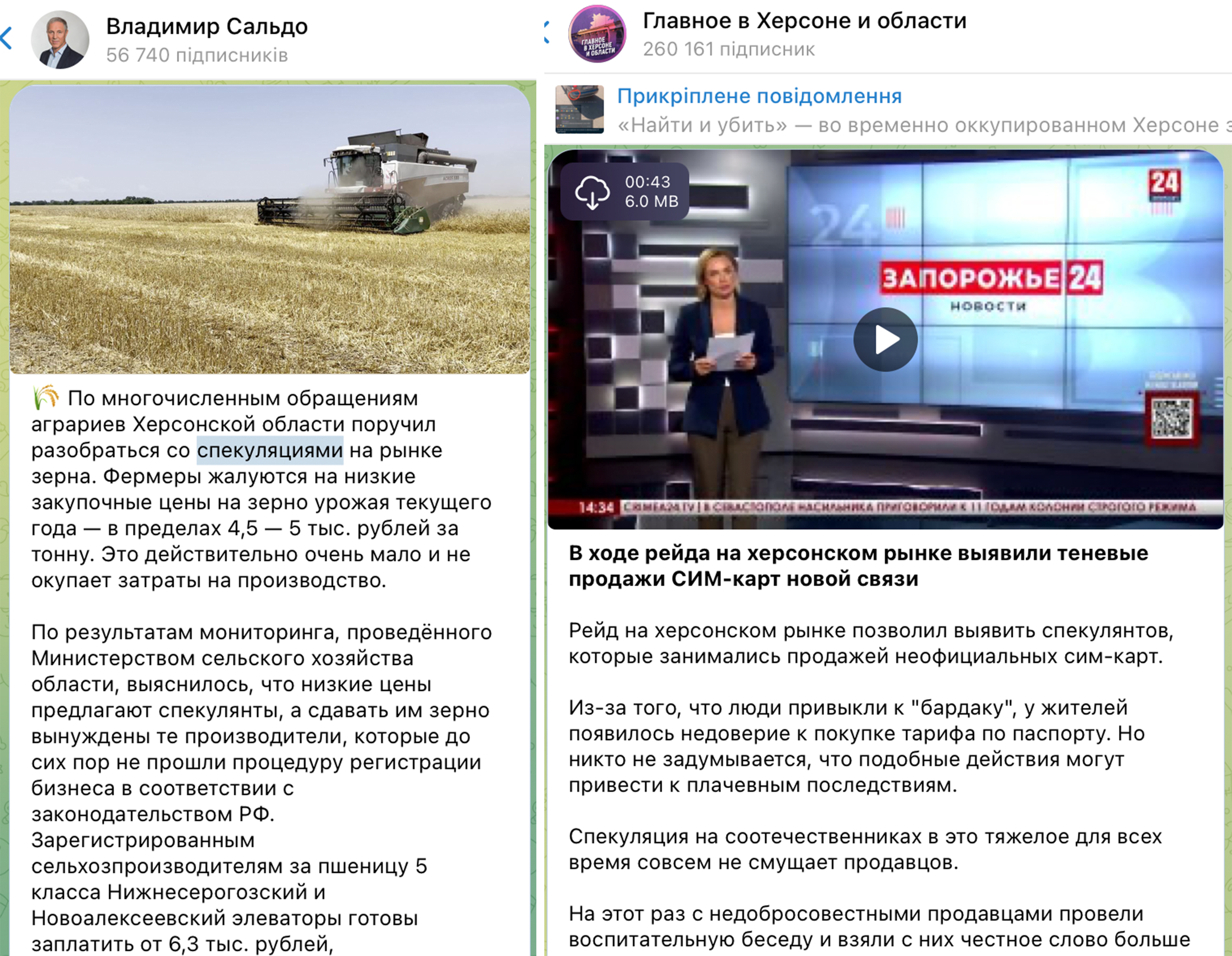 У СРСР боролись зі “спекуляцією”. Тепер в окупаційних медіа з’являються повідомлення про те, що деякі люди на окупованих Росією територіях спекулюють. Міфічними спекулянтами та створенням видимості, що “все під контролем”, загарбники прикривають намір знищити економіку регіону.