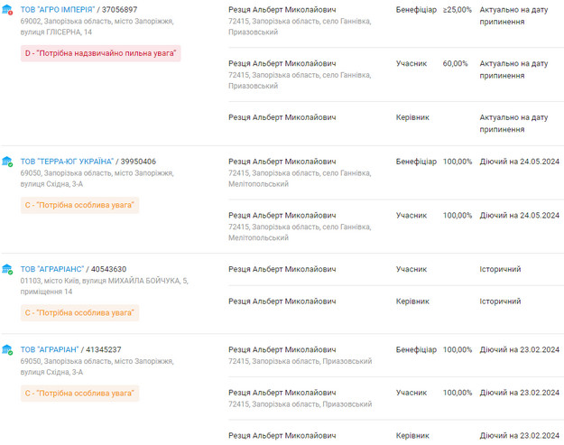 Хоча всі його компанії зареєстровані у Києві та Запорізькій області.